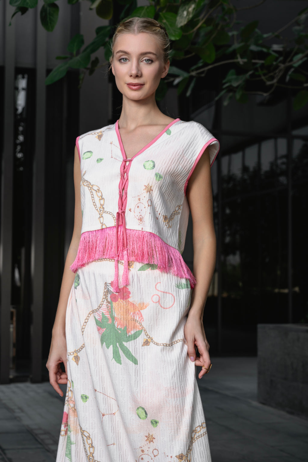Unveiled during our annual fashion show in Dubai, this exclusive collection captures the spirit of astrology through artistic prints hand-designed by Coralie. Each creation is a wearable talisman, infused with emotion, mysticism, and individuality,  reminding us that the stars are always within reach.