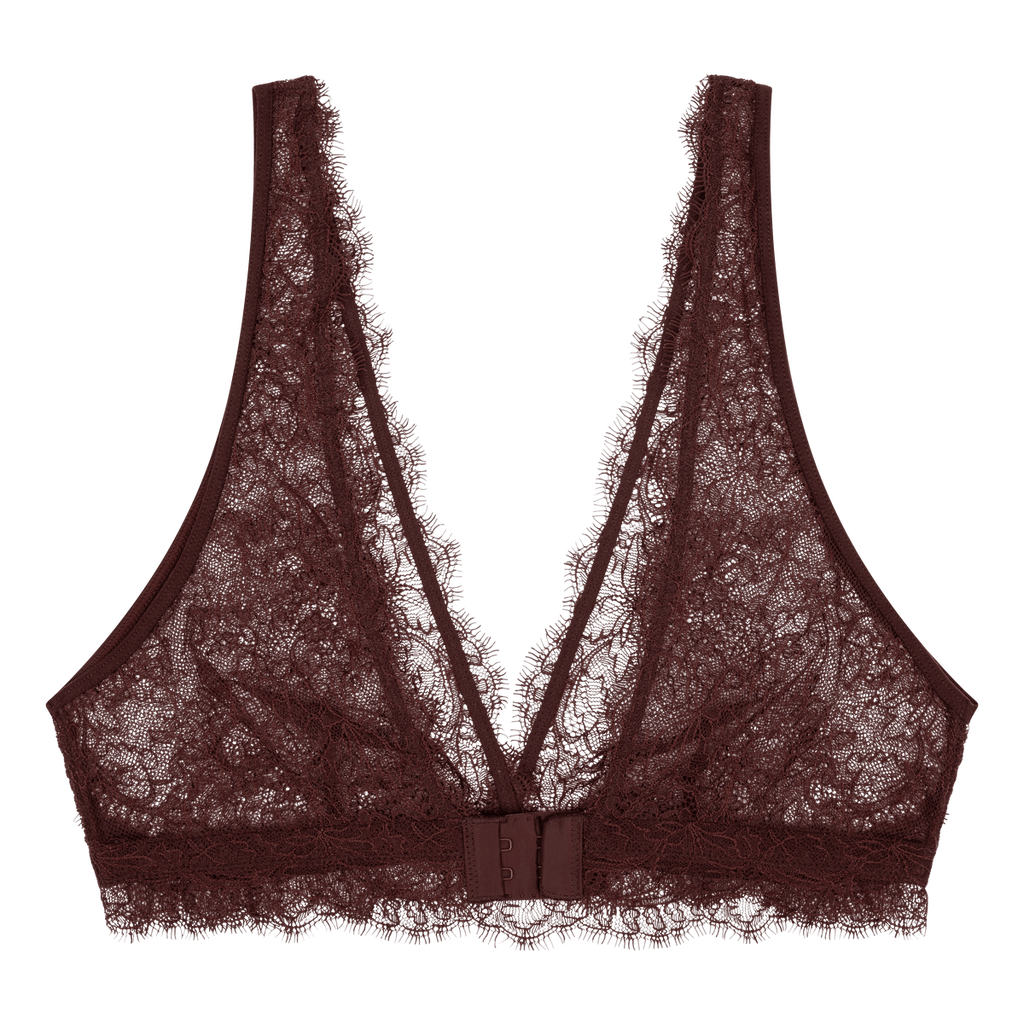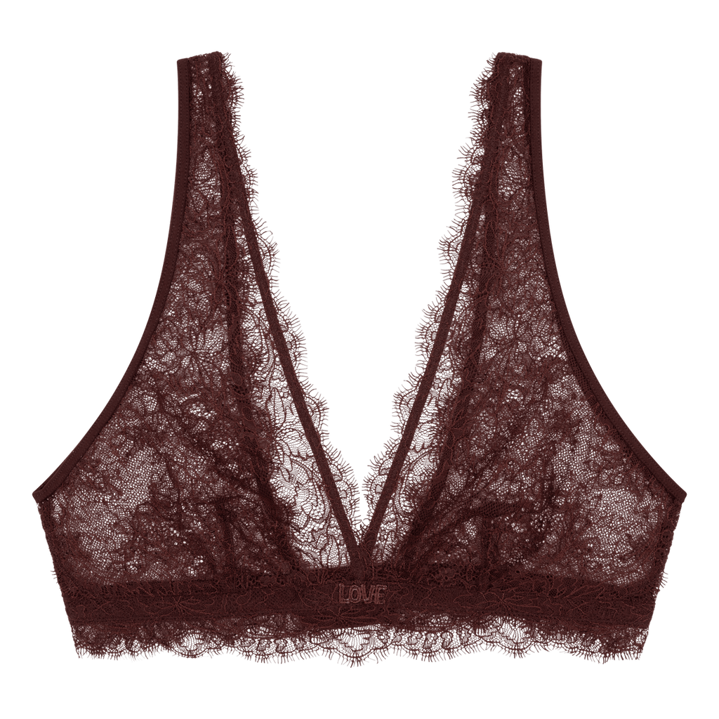 - The bralette is crafted from a delicate lace fabric that feels lightweight against your skin