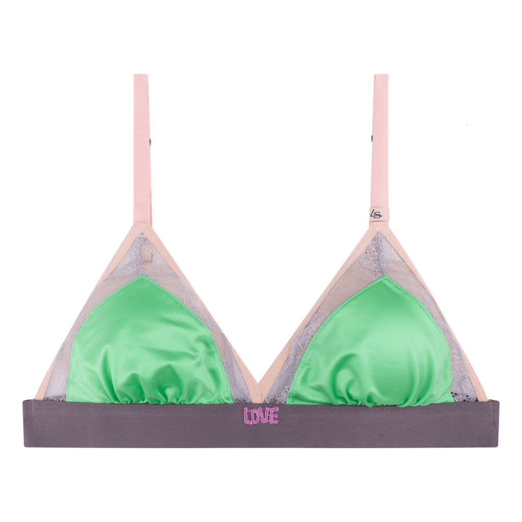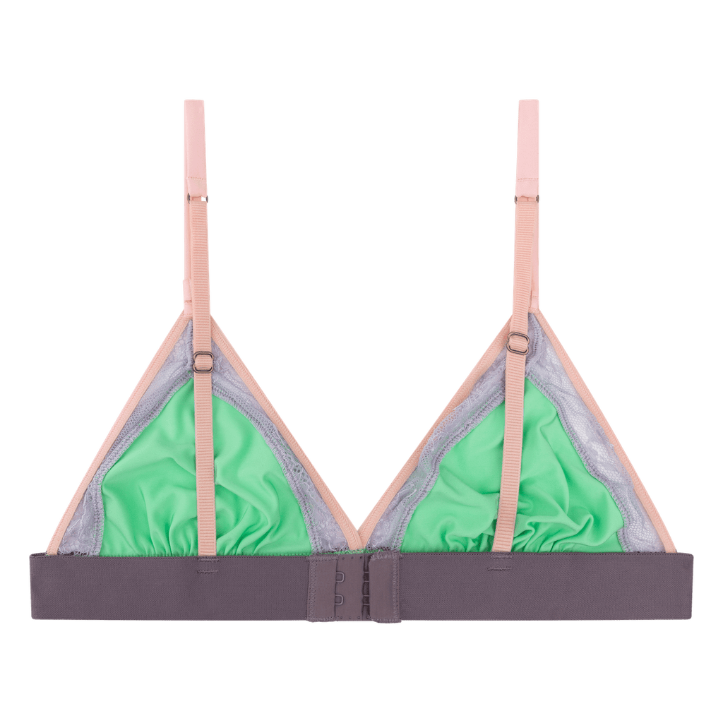 -Unpadded triangle bralette in purple and green
