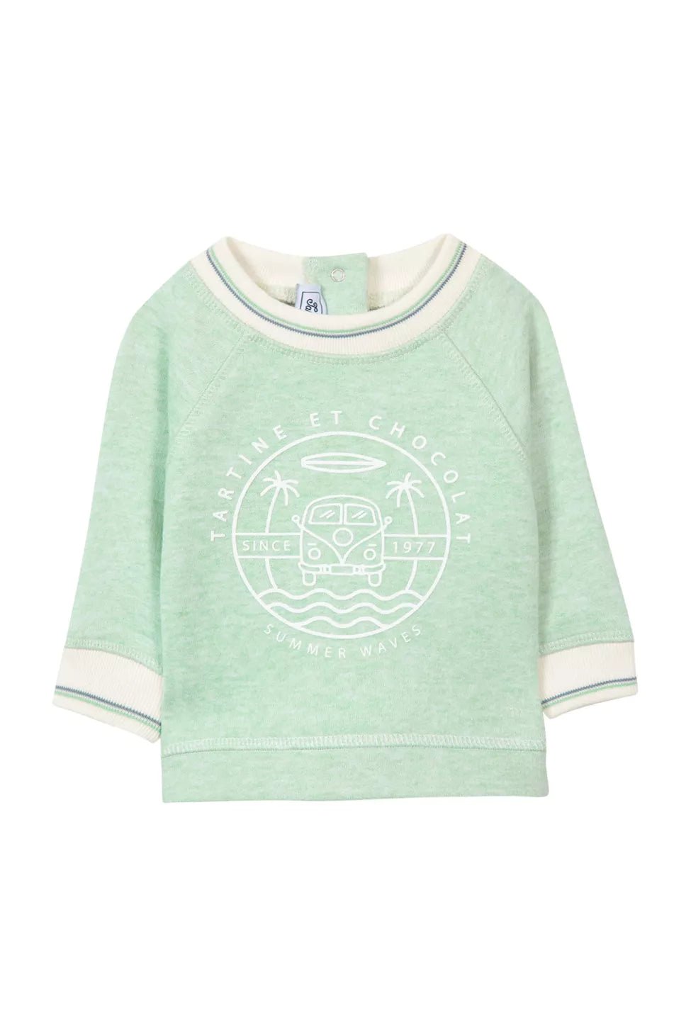 Ideal for budding adventurers, this adorable Sweat-shirt Green in Fleece will accompany your little boy on his first walks.