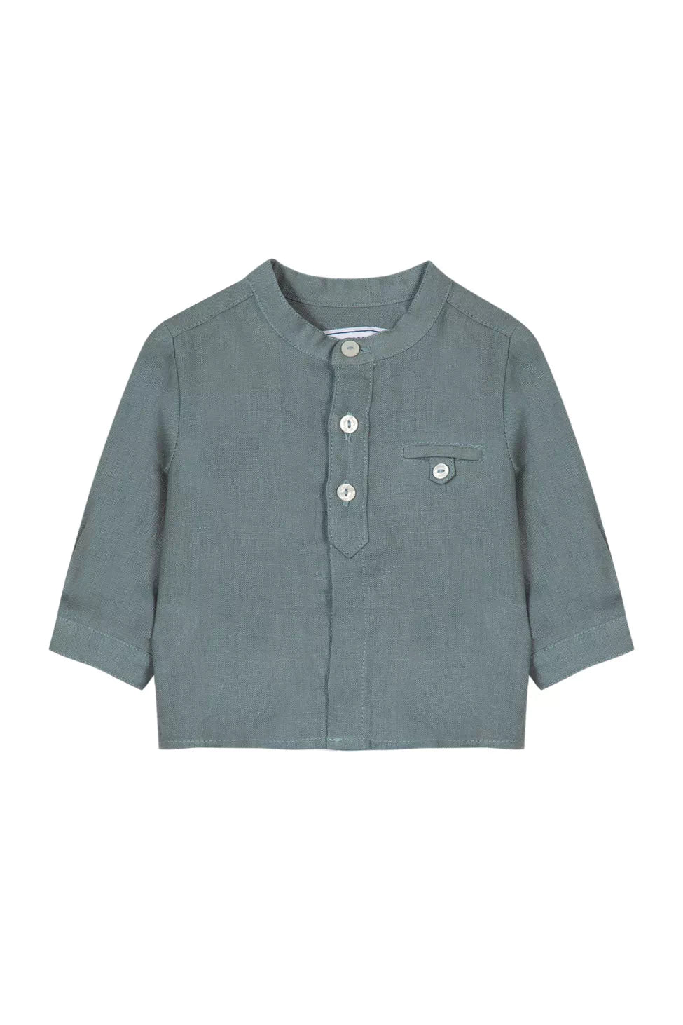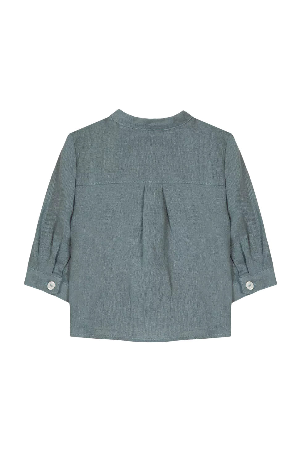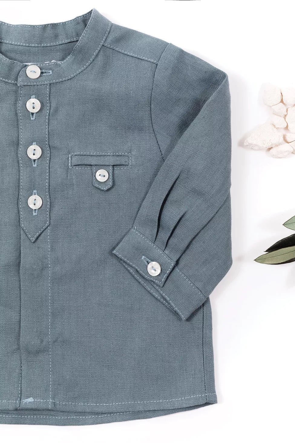 Shirt made of long-sleeved linen, it is ideal to give all little boys a modern and sophisticated look while remaining comfortable. We love her Green of Grey, its Mao collar, and his Pocket decorative which bring a touch of elegance to the Shirt.