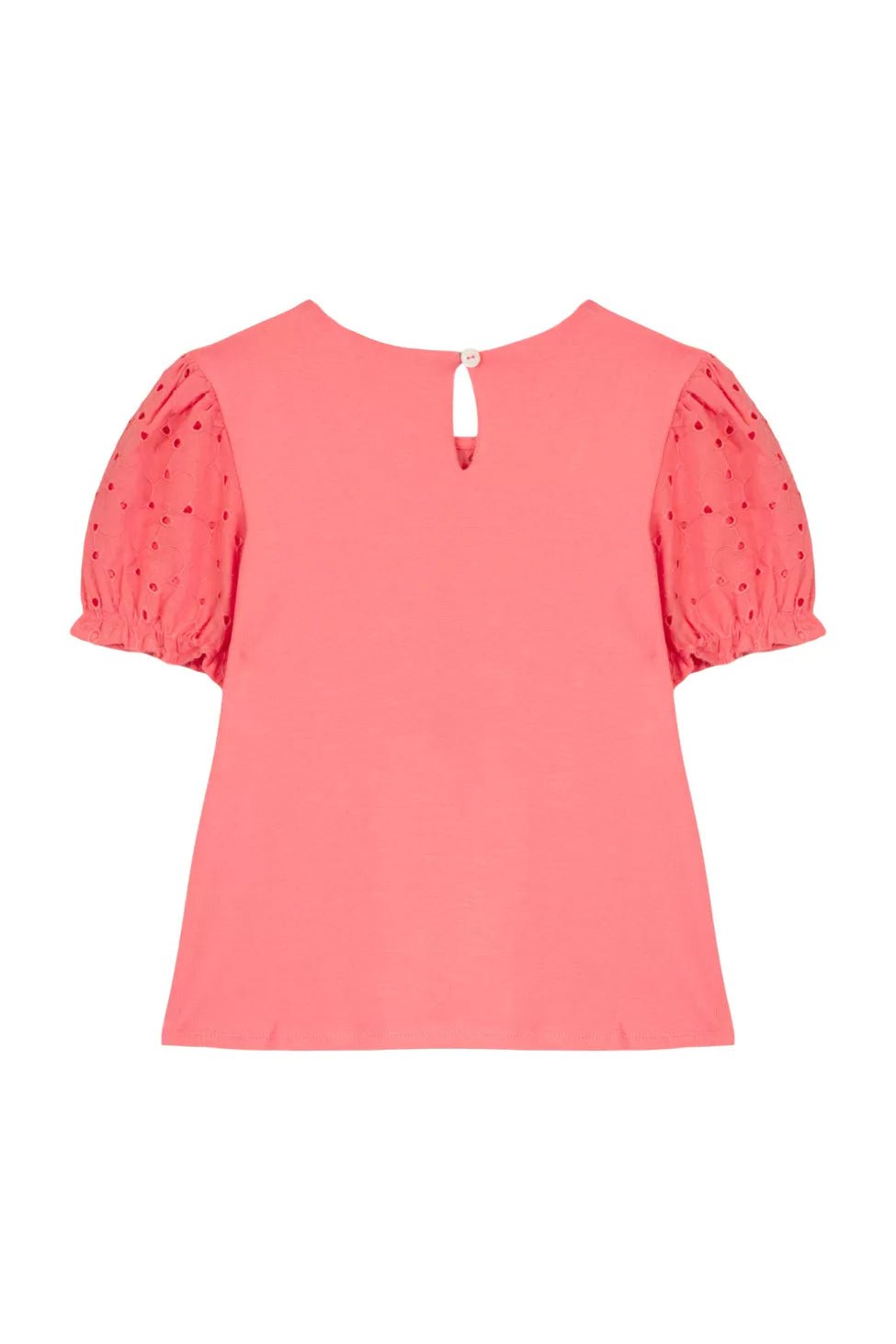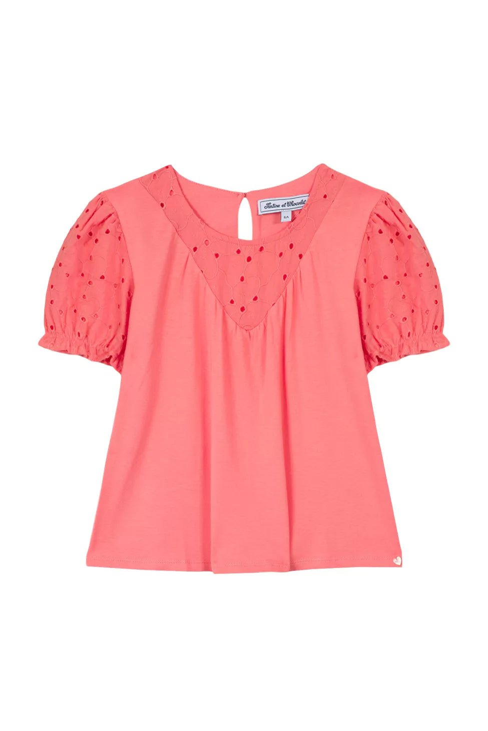 This sweet T-shirt short sleeves is embellished with adorable English embroidery. We love its softness and its balloon sleeves that bring a touch of refinement to little girls' outfits.