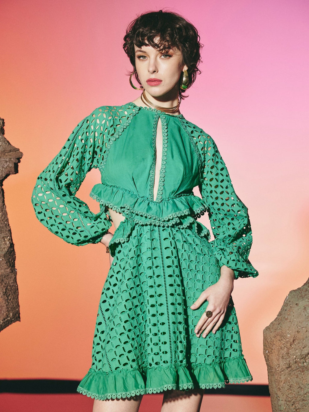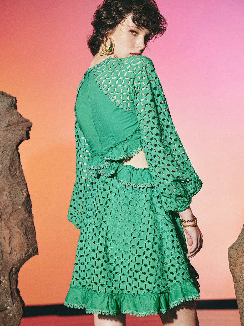 Dentelle Short Cut Out Dress Green | فستان نسائي