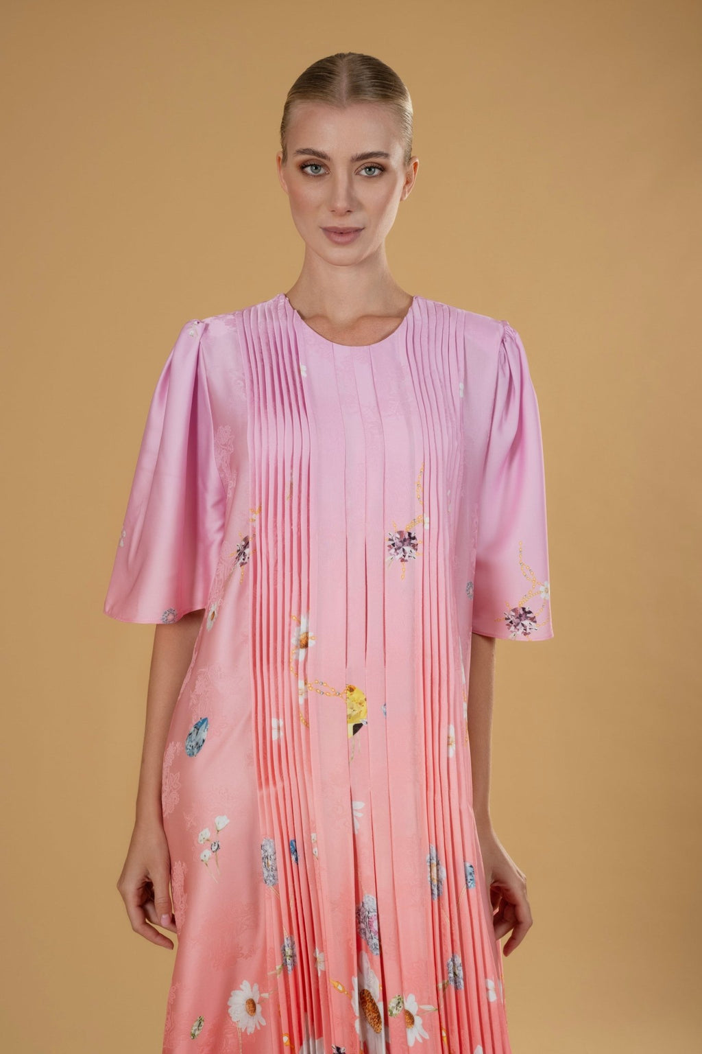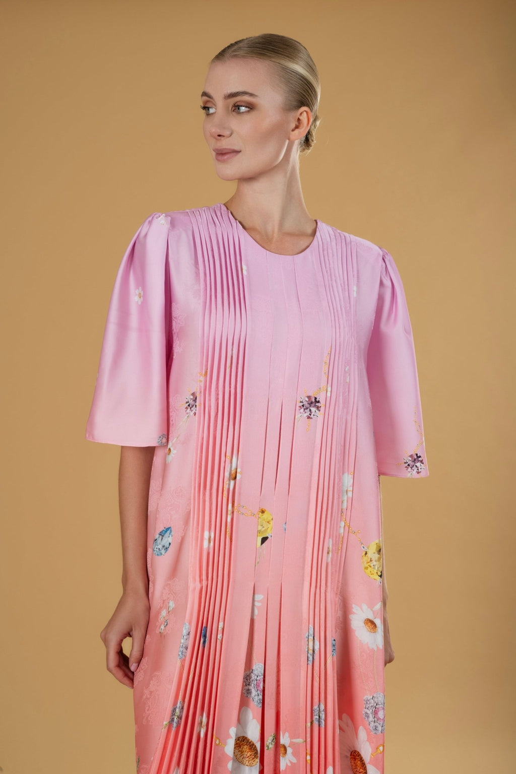 The intricate patterns, inspired by the mesmerizing jewelry collections of Bayt Damas, are designed and printed in Dubai. Each dress reflects the elegance and detailed craftsmanship of fine jewelry, bringing a unique story to your ensemble.