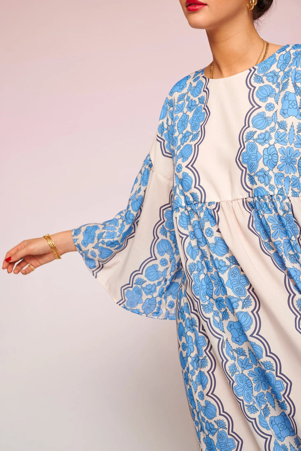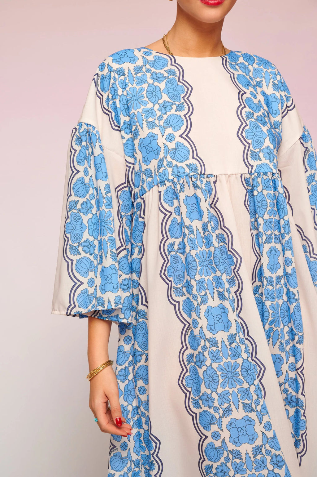 - Elegant gown with incredible pattern, feels and looks amazing, so light and breezy, bell sleeves, oversized