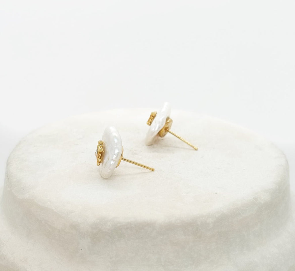 Ear fleas Helia capture nature's imperfect beauty with their irregular cultured pearls. A delicately set golden star adds a celestial touch. Crafted with passion in our Paris workshops, each piece is a tribute to craftsmanship and poetic elegance, where every detail shines with a unique light.