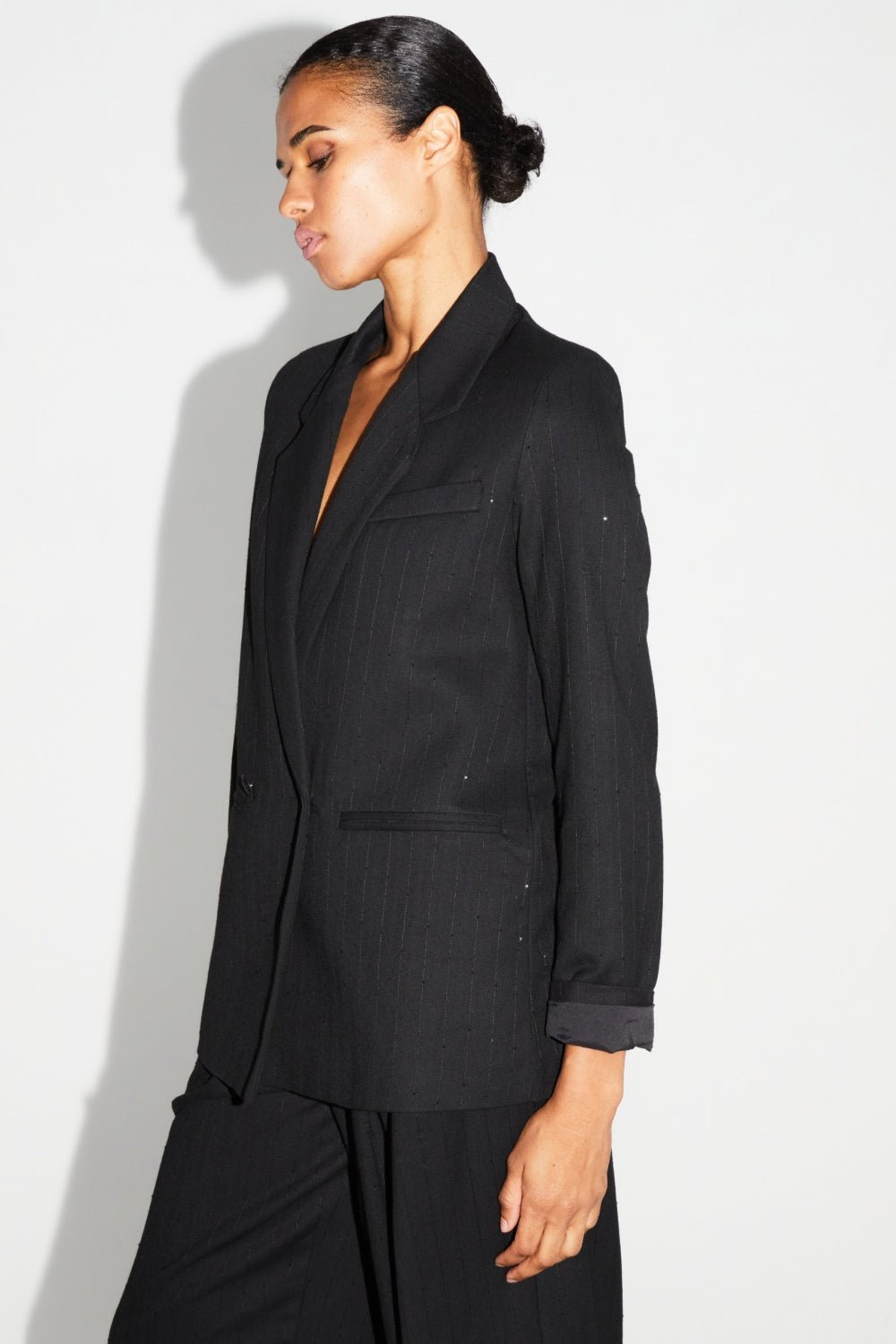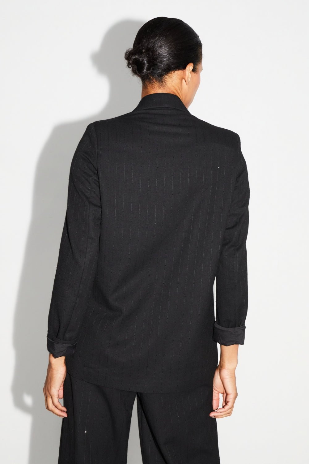 • Italian knitted fabric: deep black, structured chevron, Stripes highlighted with ton on ton sequins
