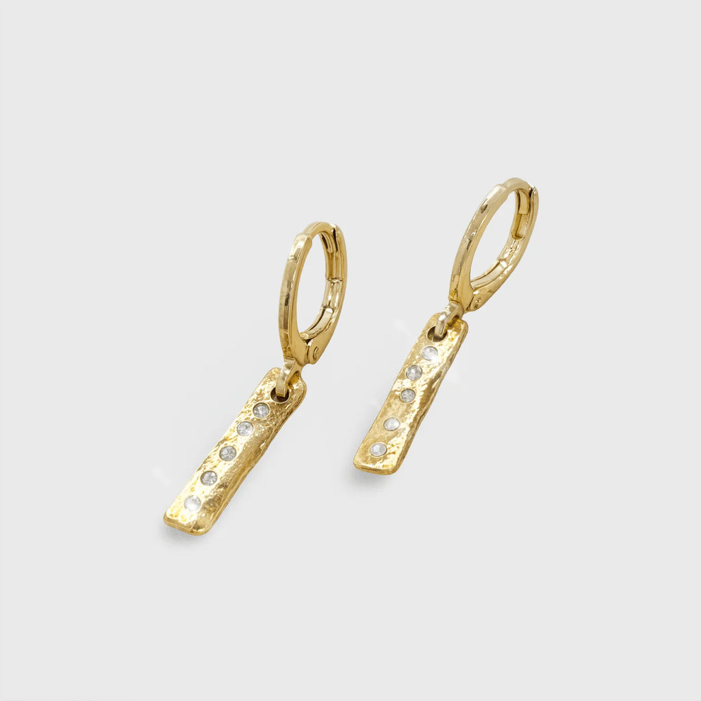 Lefkes, a pair of dangling Creole earrings, crafted in Paris in our workshops with artisanal savoir-faire, embody modern elegance. They are delicately adorned with two plates set with sparkling crystals that catch the light with every movement. Their fluid, refined design adds a touch of sophistication, making these earrings a must-have accessory to sublimate any outfit.