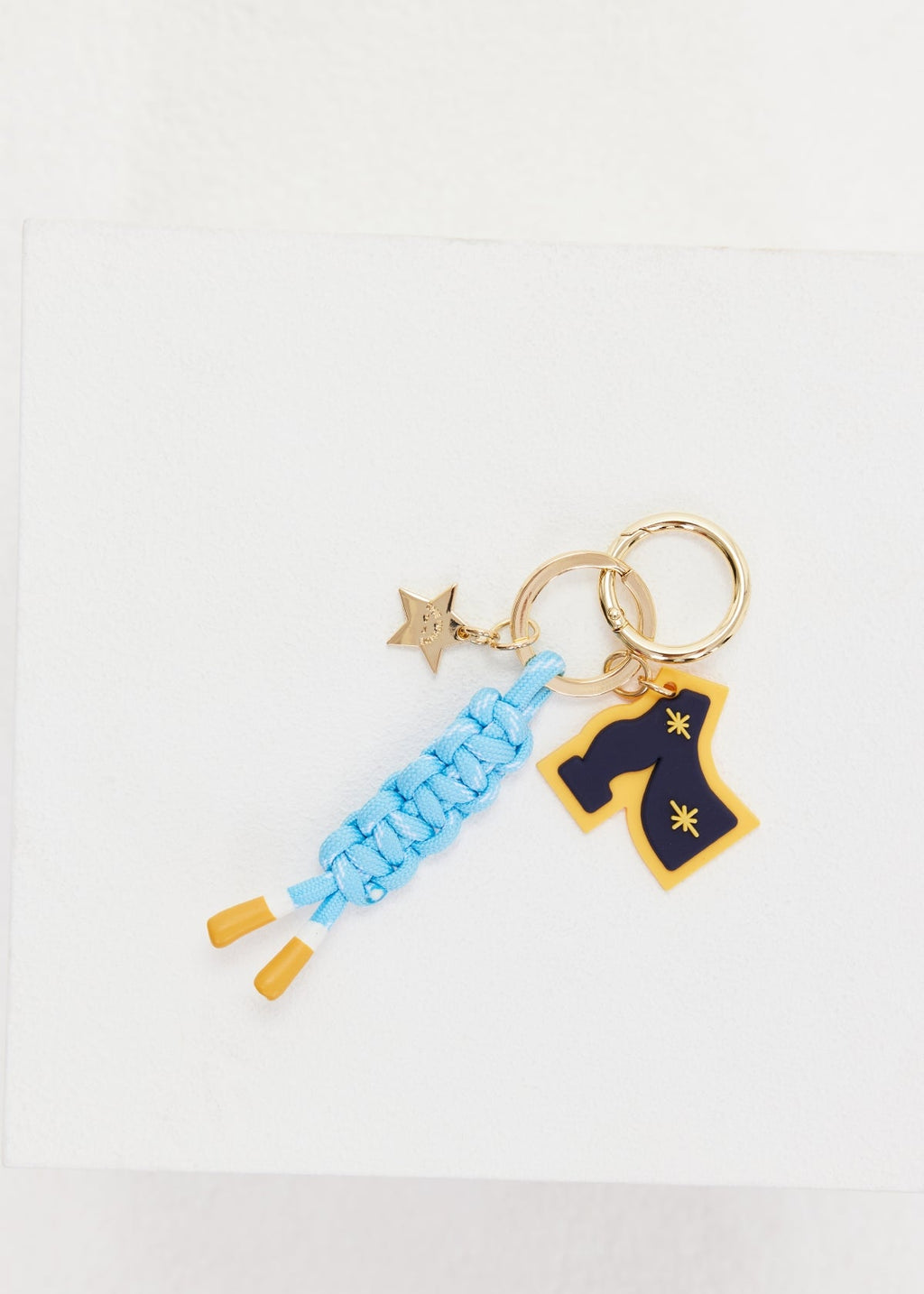 Keyring charm with gold metal star and embossed logo