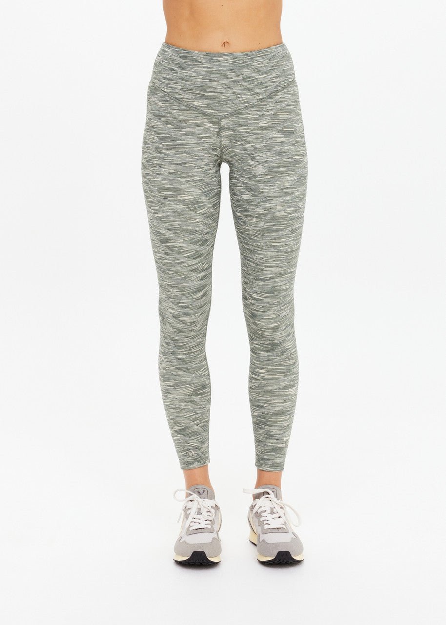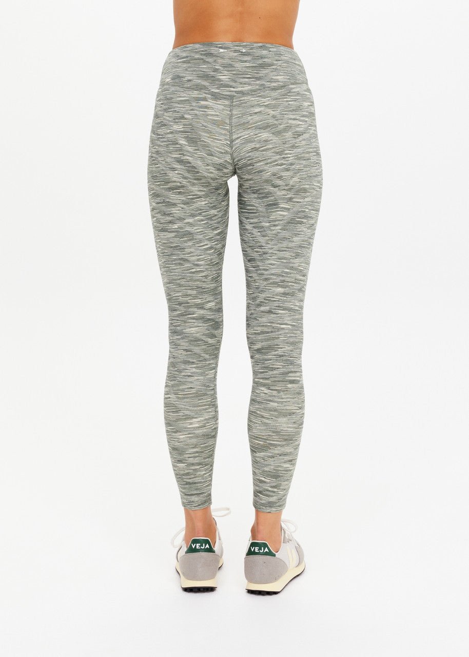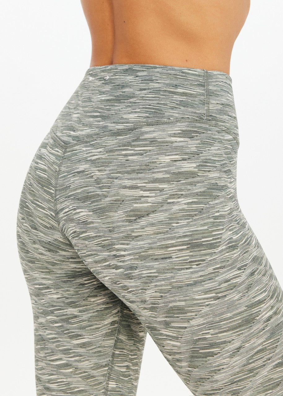 High rise 25" leg length pant in our exclusive reversible recycled fabrication
