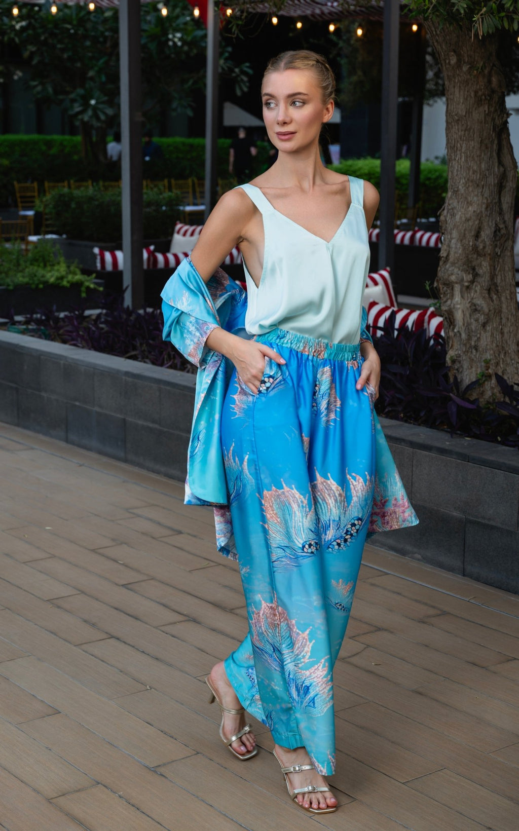 Introducing our stunning wide-cut trousers, an exquisite blend of elegance and comfort. Crafted from a luxurious mix of silk and spandex, these trousers promise a beautiful flow and perfect fit.