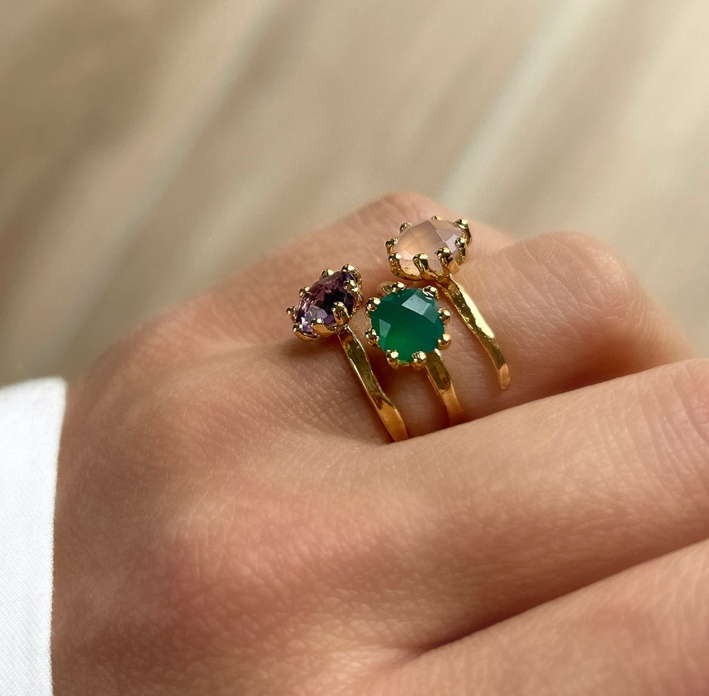 Green onyx Let yourself be enchanted by the enchanting brilliance of this stone. A symbol of renewal and energy, this emerald-colored stone captures the light with captivating intensity. The meticulous setting enhances the depth of its color.