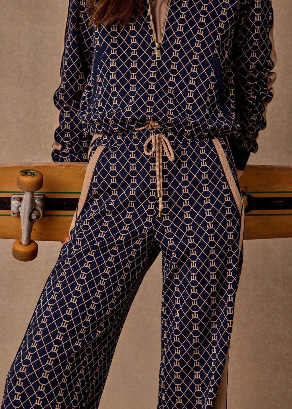 Wide leg pant with a slight flare in soft knitted jacquard fabrication