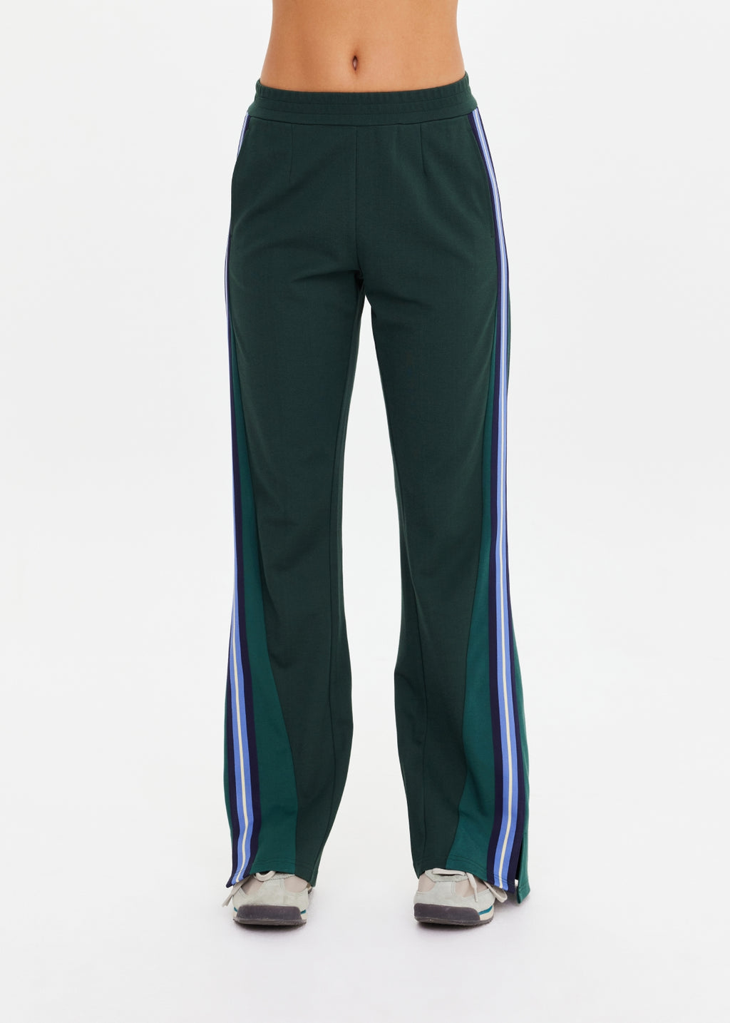 Contrast knitted tape down side seams in navy, blue and cream adding a sporty touch
