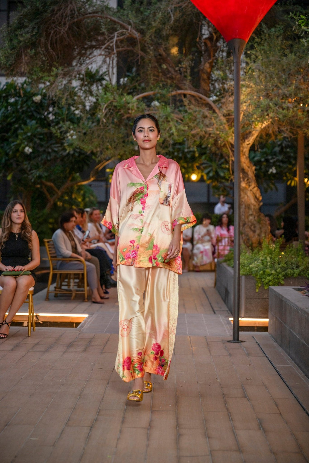 Introducing our elegant shirts, perfectly designed to match our wide-cut trousers. Crafted from the same luxurious blend of silk and spandex, these shirts offer an exquisite combination of style and comfort.