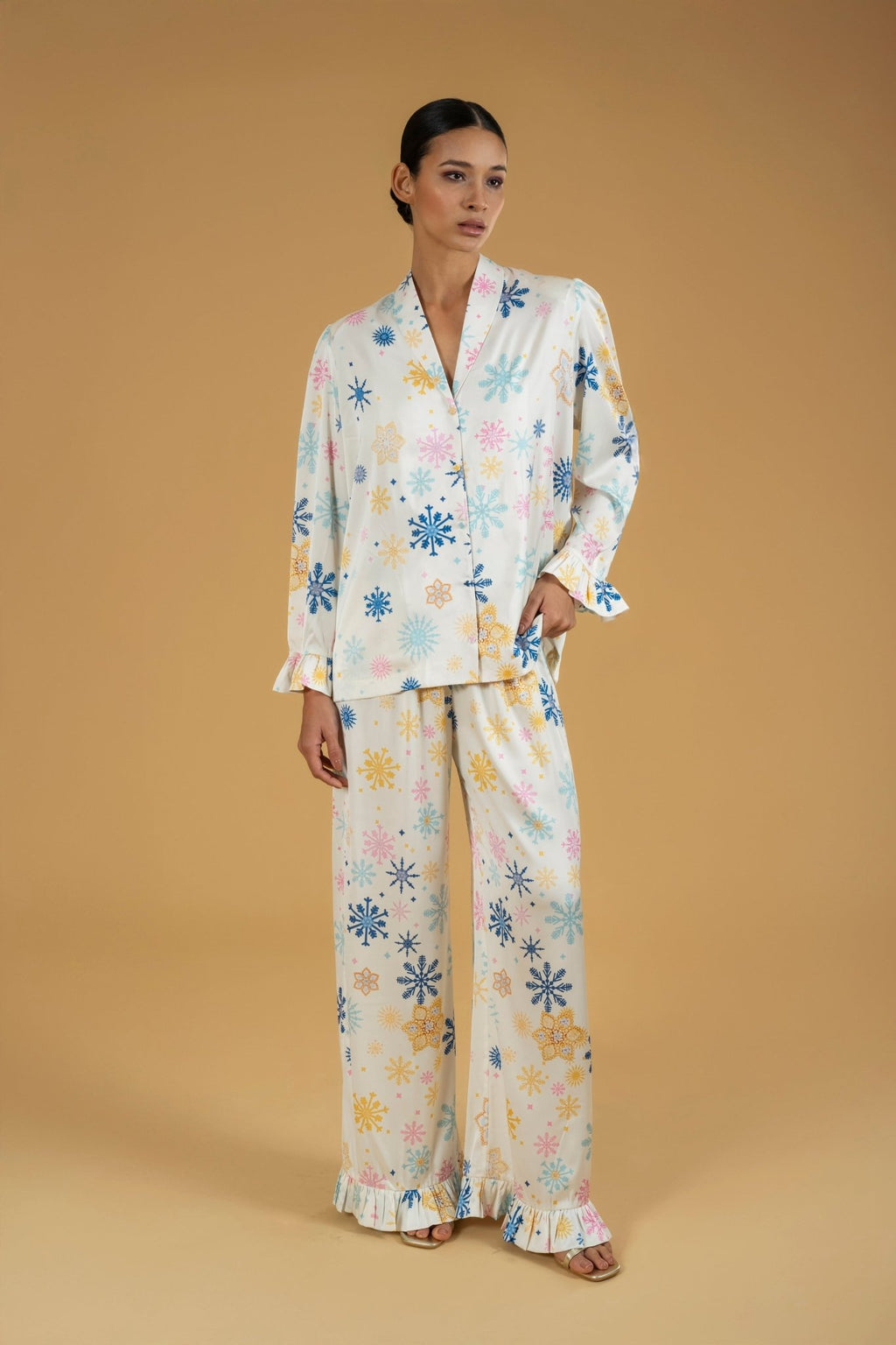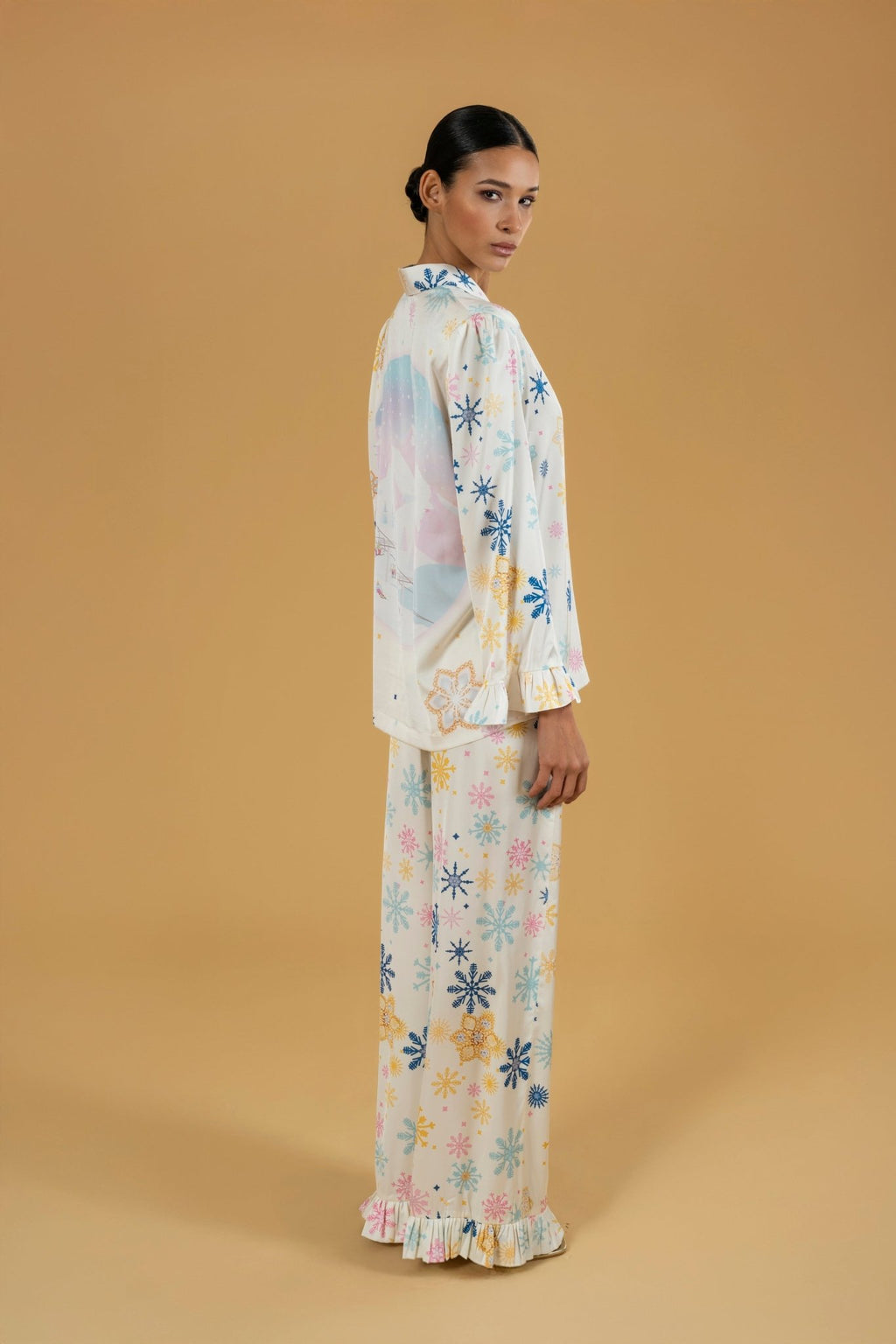 • The intricate patterns, inspired by the mesmerizing jewelry collections of Bayt Damas, are designed and printed in Dubai. Each shirt reflects the elegance and sophistication of their collections, creating a harmonious and fashionable ensemble when paired with the matching trousers.
