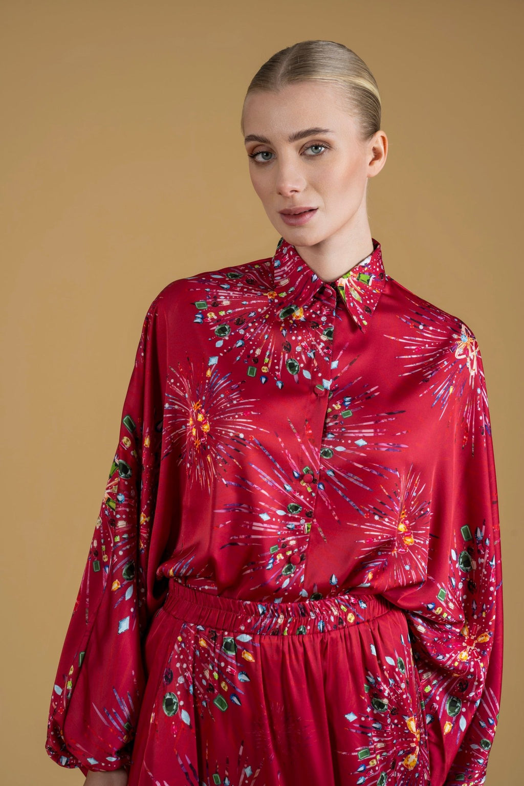 Introducing our elegant shirts, perfectly designed to match our wide-cut trousers. Crafted from the same luxurious blend of silk and spandex, these shirts offer an exquisite combination of style and comfort.