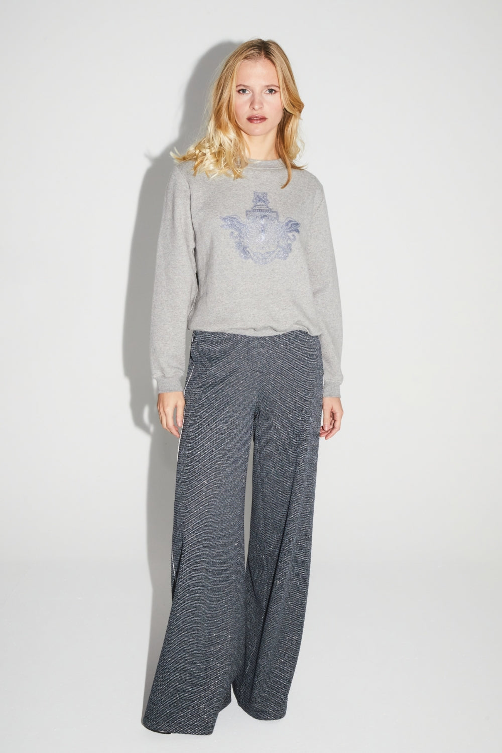 - Denim blue, black and silver thread colors for a discreet luminous touch