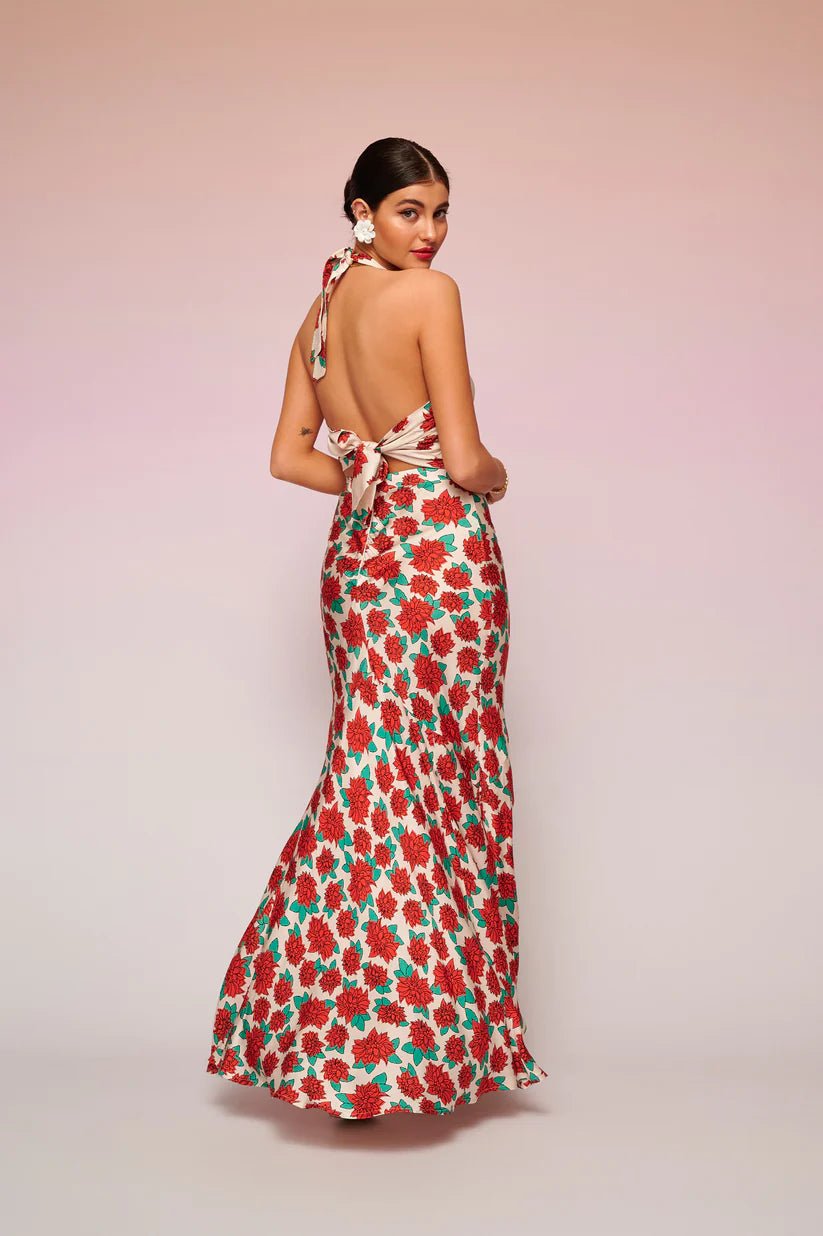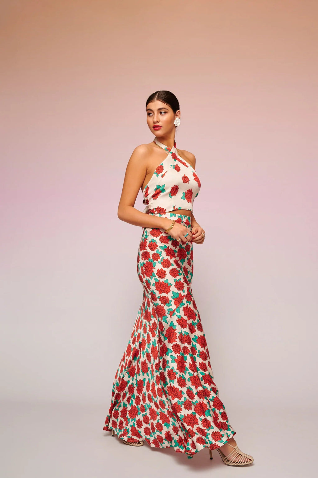 - Gigi Halter Neck Top is embellished W/ Beautiful Floral Pattern