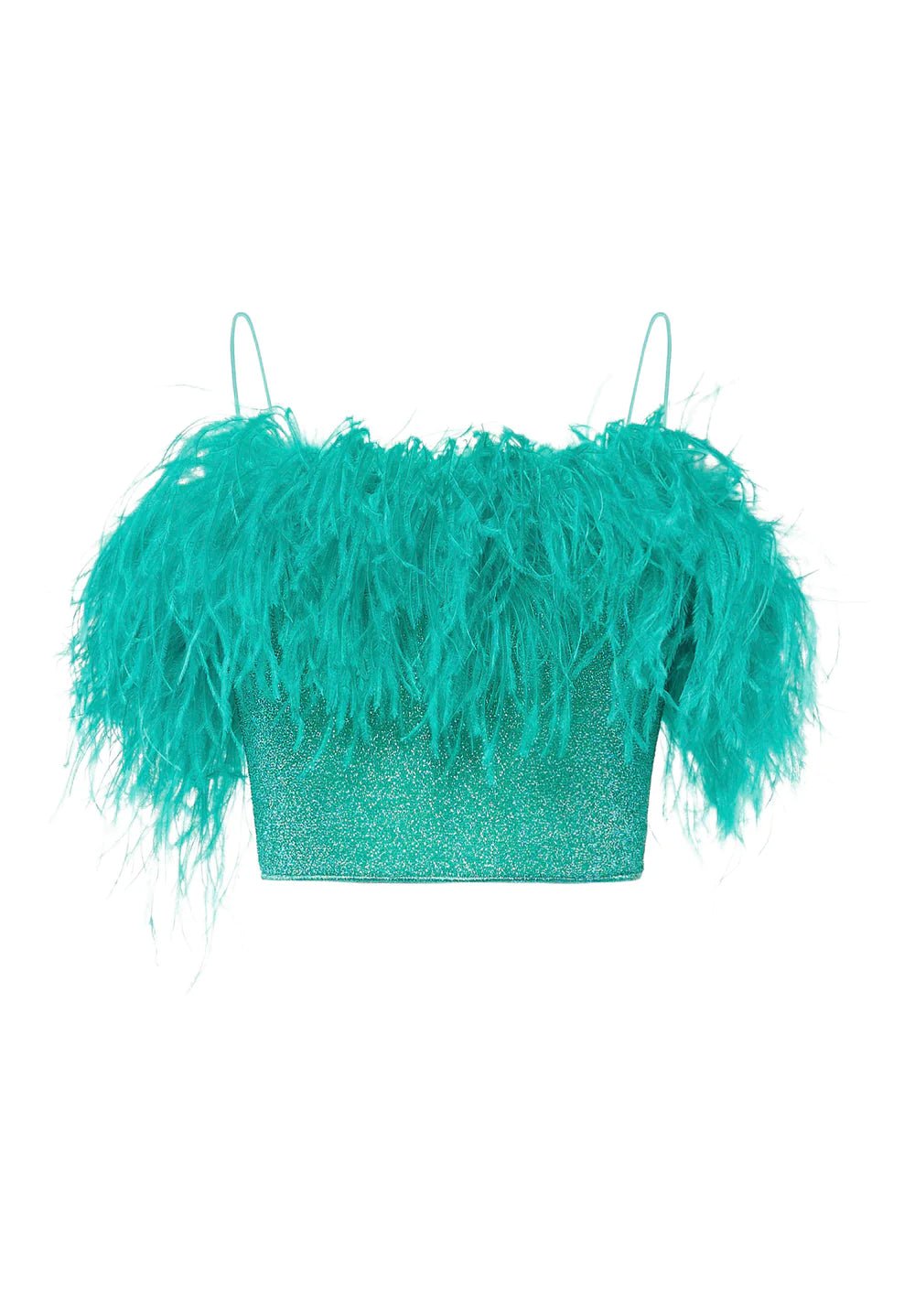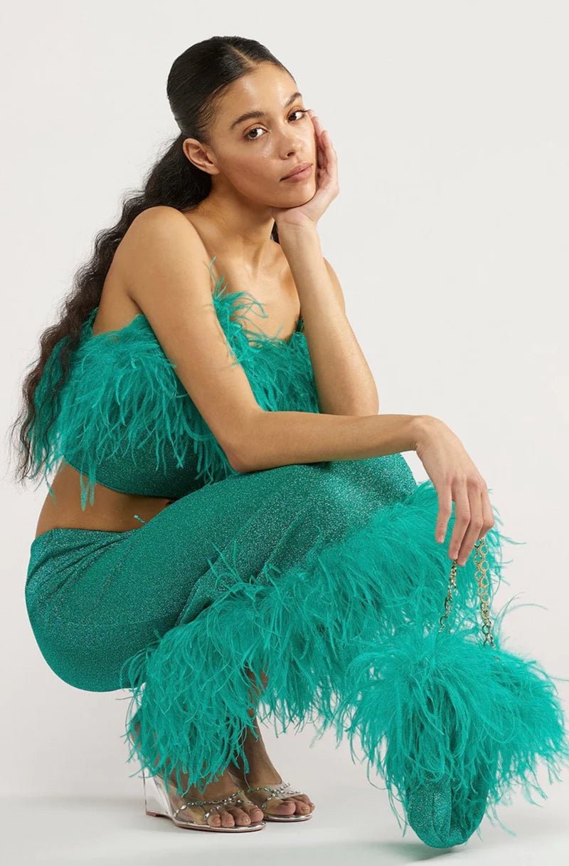 • Top Lumiere Plumange Cropped Top by Oseree , embellished W/ Beautiful Ostrich Feathers