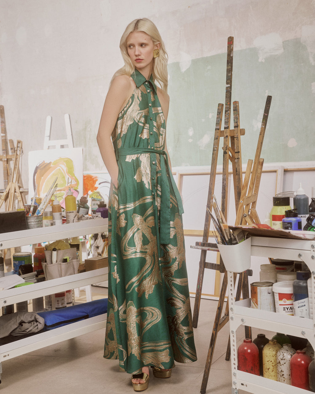 Maxi Dress Agapia Callisto Gold Emerald| فستان نسائي